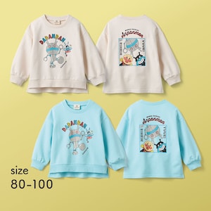 ―デザイン・スタイリング―・季節感のあるカラーでキャラクターたちをプリント・スタジャン風の配色とラインリブもカッコいい・男の子にも女の子にも似合うデザイン―素材―・身生地は程よい厚みの綿100%裏毛素...