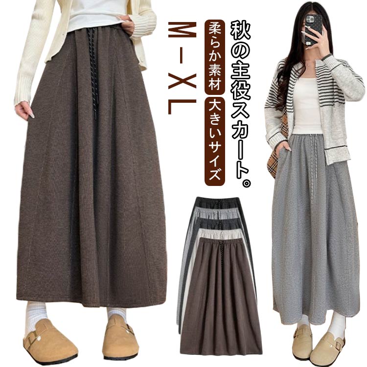 レディース ミモレ丈 ロングスカート スカート 低身長〜高身長 Aライン スカート フレアスカート 柔らか素材 ハイウエスト ウエストゴム