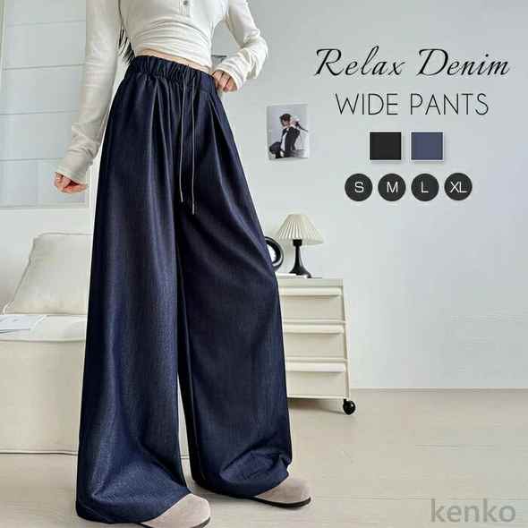 ワイドパンツ デニムパンツ レディース ジーンズ ジーパン ゆるフィット 大きいサイズ 体型カバー 選べるレングス ストレッチ 股下68cm 股下73cm 春 夏 秋 冬 S M L LL 3L 4L ...