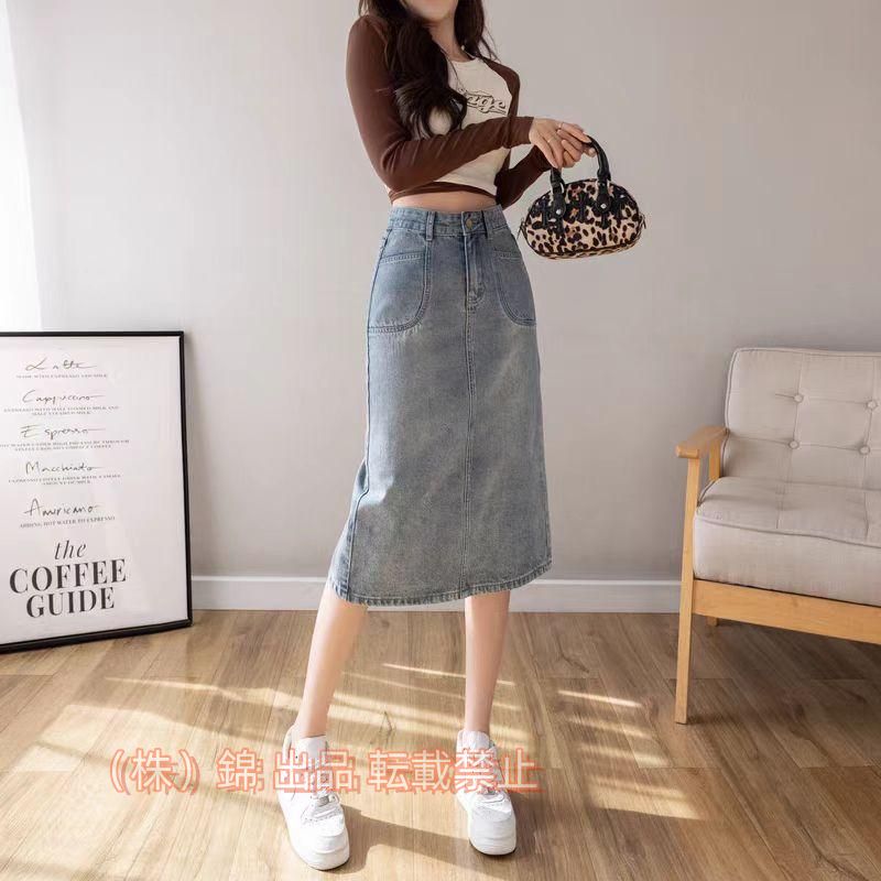 デニム ロングスカート 台形スカート ロング マキシ丈 レディース 秋 夏 デニム 錦 スカート ペンシルスカート タイトスカート スリット