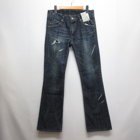 【中古】ミスターオリーブ MR.OLIVE ダメージ加工 ブーツカット デニム パンツ ジーンズ 30 インディゴ 日本製 メンズ
