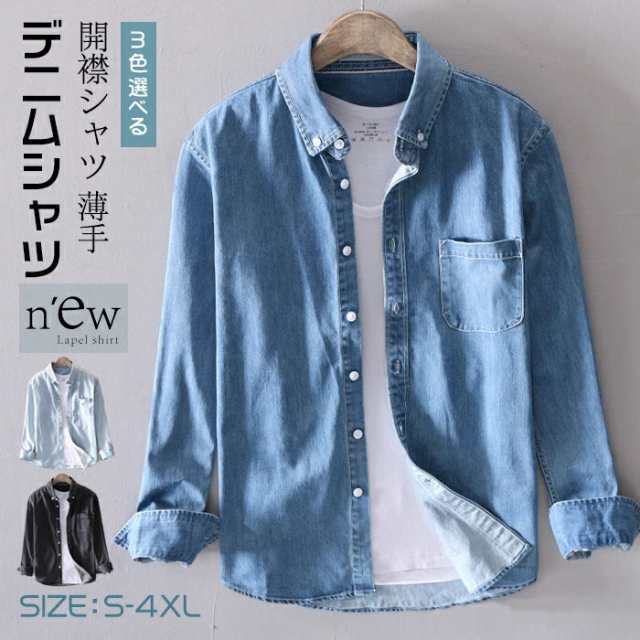 長袖シャツ デニム デニムシャツ 春夏 メンズ デニム ワイシャツ 綿シャツ 長袖 無地 カジュアル 薄手 開襟シャツ スリム 通学 通勤 薄手