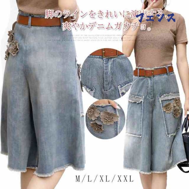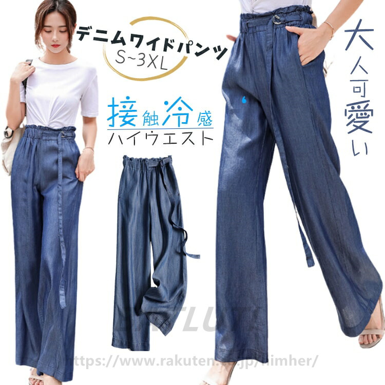 ワイドパンツ 涼しい デニム ハイウエスト きれいめ 大きいサイズ おしゃれ 春 夏 秋 通勤 ウエスト調節 薄い ロングパンツ 長ズボン ボトムス ゆったり S M L XL 背 が 低い 2XLワ...