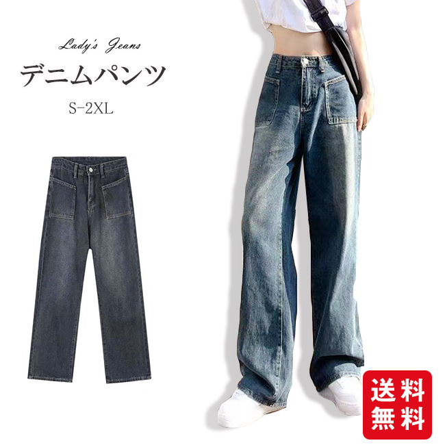 春新作 【新発売】デニムパンツ ワイドパンツ 脚長効果 デニム ズボン レディース ジーンズ 美尻 体型カバー 着痩せ 美脚 春 夏 ポイン