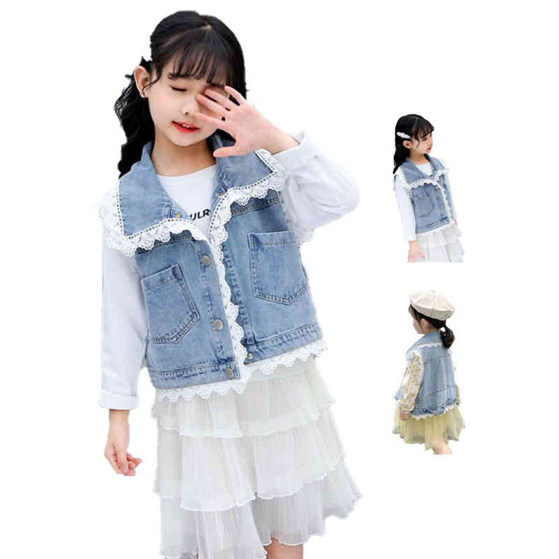 デニムベスト キッズ レースベスト ショートベスト ノースリーブ フリルベスト デニム フリル ショート丈 レース付き カジュアルベスト