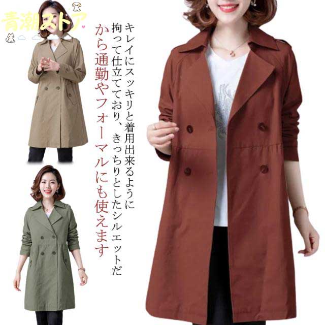 トレンチコート レディース ロングコート 春秋 春服 春コーデ 春アウター ベルト付き 薄手 定番 軽アウター 大きいサイズ 通勤 きれいめ 上品 体型カバー 入学式 入園式 卒業式 卒園式 オフィス ...