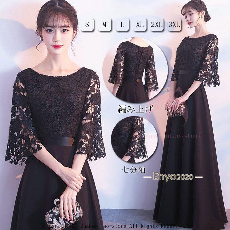 結婚式 ワンピース パーティードレス 刺繍 レース ロング 総レース 透け感 バックリボン タイト ペンシルスカート ボリューム袖 ロング丈 ミモレ丈 袖あり 大きいサイズ 小さいサイズ オケージョン ...