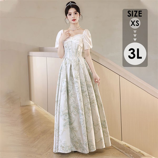 結婚式 ワンピース パーティードレス 花柄 プリーツ チュール ロング 総レース 透け感 ウエストゴム 大きいサイズ 小さいサイズ 7分袖 袖あり オケージョン 1.5次会 春 夏 秋 冬 パーティドレ...