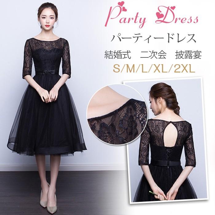 バックプリーツ レースリボン パーティードレス 結婚式 ワンピース 体型カバー お呼ばれ ドレス 七分袖 フォーマルドレス 顔合わせ 大きいサイズ 20代 30代 40代 春 50代 親族 小さいサイズ...