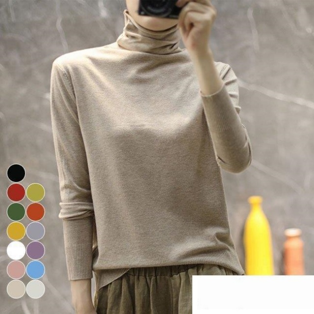 トップス ニット セーター ハイネック リブ ボリュームスリーブ トレンド 切り替えデザイン2026春夏 宅込