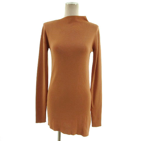 【中古】スタニングルアー STUNNING LURE ニット モックネック アシンメトリー 長袖 ロング丈 裾スリット 茶系 M