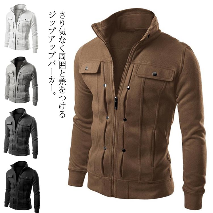 パーカー メンズ ジャケット ジップアップ 長袖 トップス トレーナー アウター メンズジャケット ファッション おしゃれ 無地 着痩せ シ