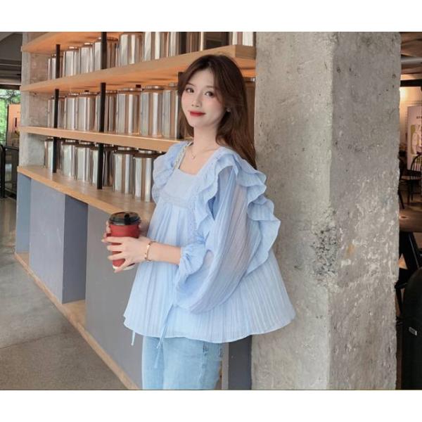ブラウス シャツ 限定展開 インド タック 切り替え フレア ブラウス レディース