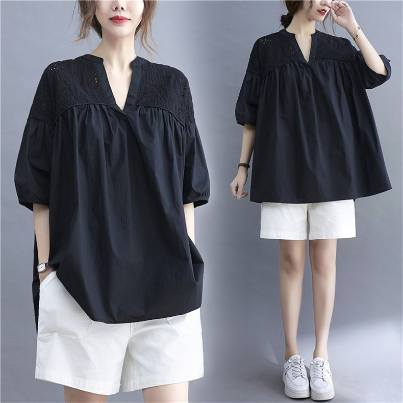 エスニック ブラウス レディース 夏 7分袖 前開き 花柄 刺? Tシャツ クルーネック 綿麻風ブラウス トップス 大きいサイズ 体型カバー