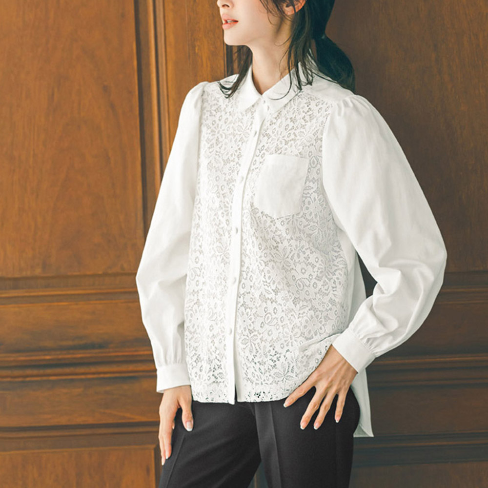 ラッセルレース使い ボリュームスリーブ シャツ ファッション シャツ ブラウス PC6135