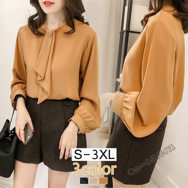 ブラウス シャツ サテンボウタイブラウス レディース