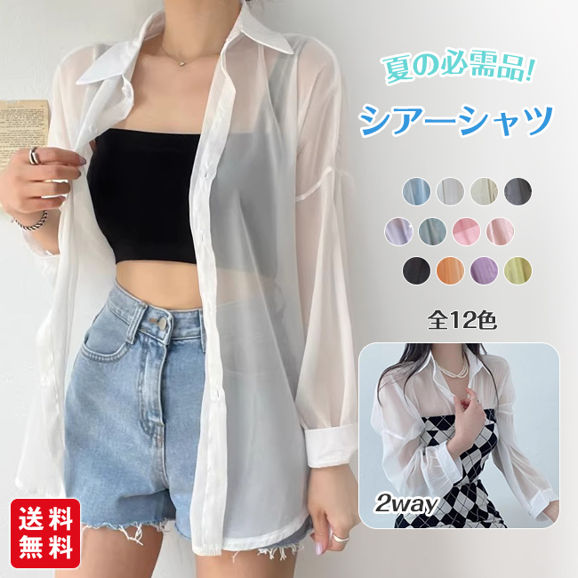 【2点5%OFF】シアーシャツ 透け感 レディース ブラウス 長袖 トップス シャツ 重ね着 日焼け対策 全12色 オーバーサイズ トレンド シース