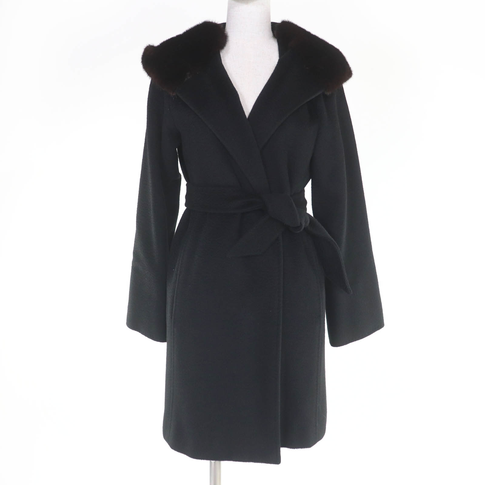 美品△Max Mara マックスマーラ ウール アンゴラ 白タグ ベルト付き シングル ステンカラーコート ロング丈 ベージュ 36 伊製 レディース