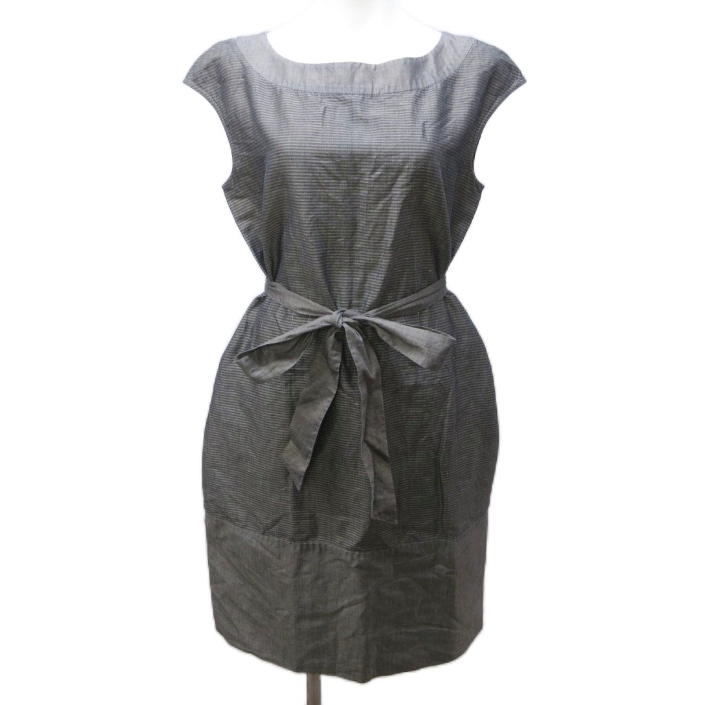 【中古】マックスマーラ ウィークエンドライン ワンピース ボーダー 切替 リボン ベルト フレンチスリーブ ロング