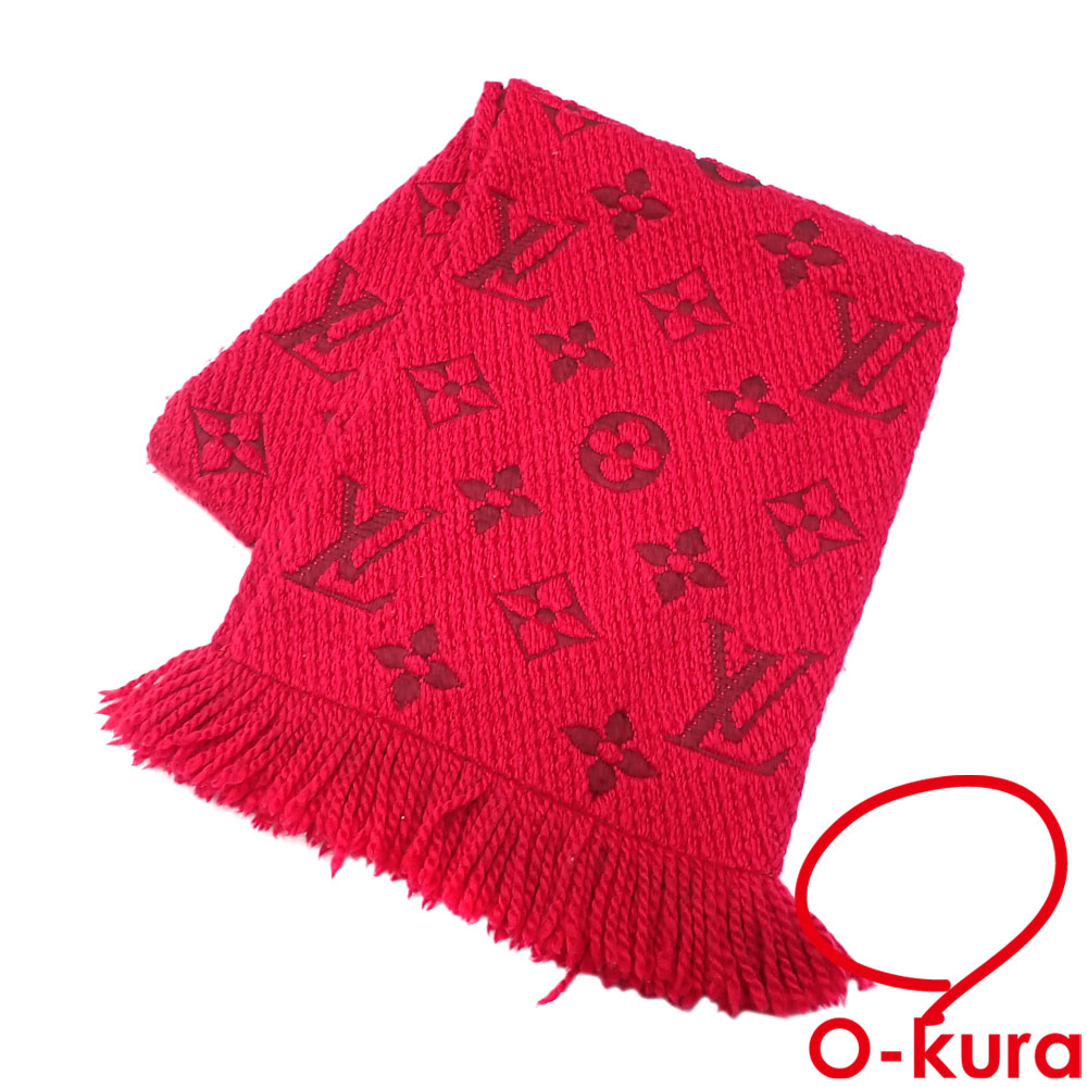 中古 ルイ・ヴィトン マフラー エシャルプ ロゴマニア レディース レッド 赤 ウール他 フリンジ 413287 古着