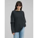 チュール ドッキング ニット レイヤード 長袖 ぽわん袖 ラウンドネック プルオーバー トップス レディース 2026春夏新作 60込