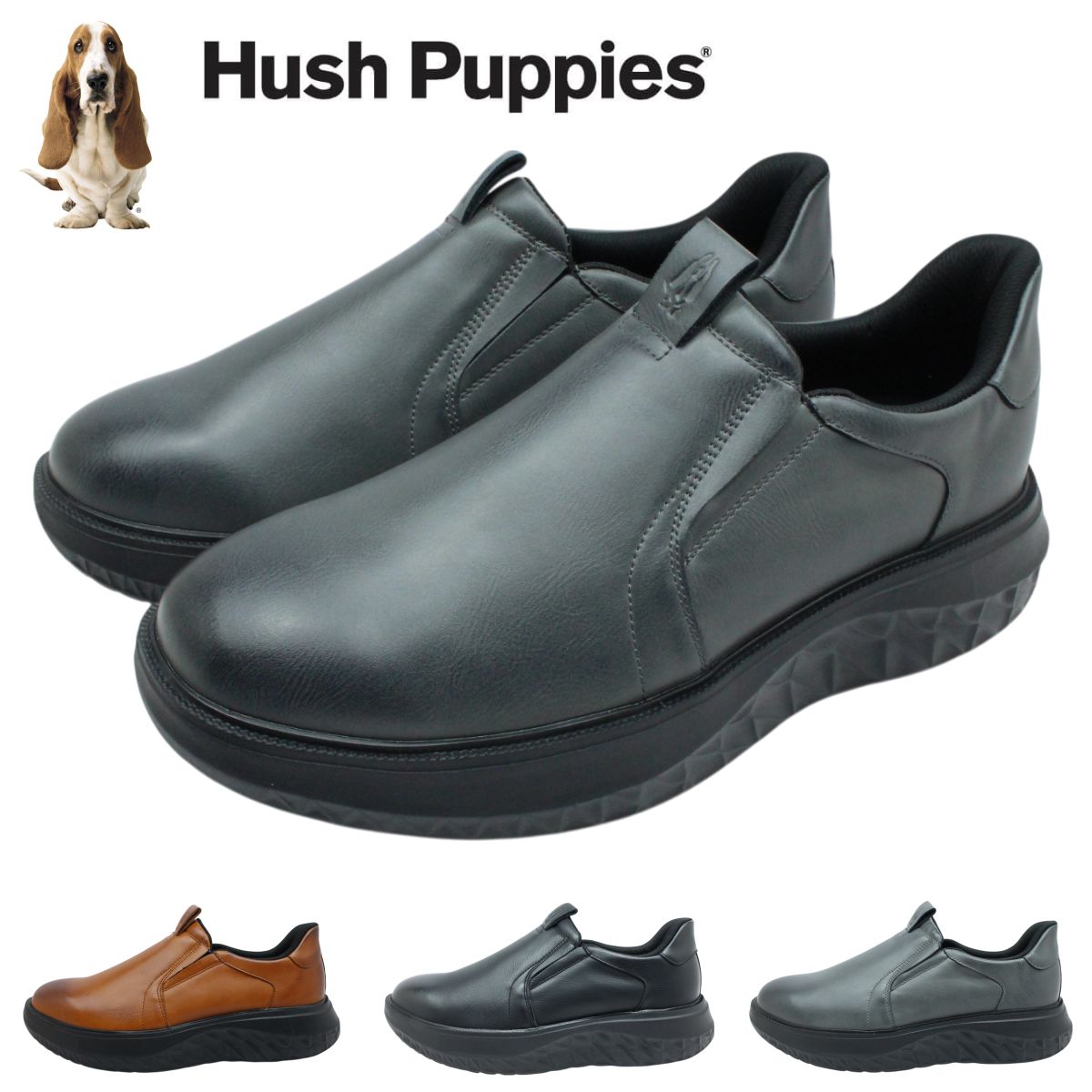 ハッシュパピー メンズ レザー ウォーキングシューズ M-7125T スリッポン 軽量 幅広3E 本革 紳士靴 カジュアル スニーカー Hush Puppies