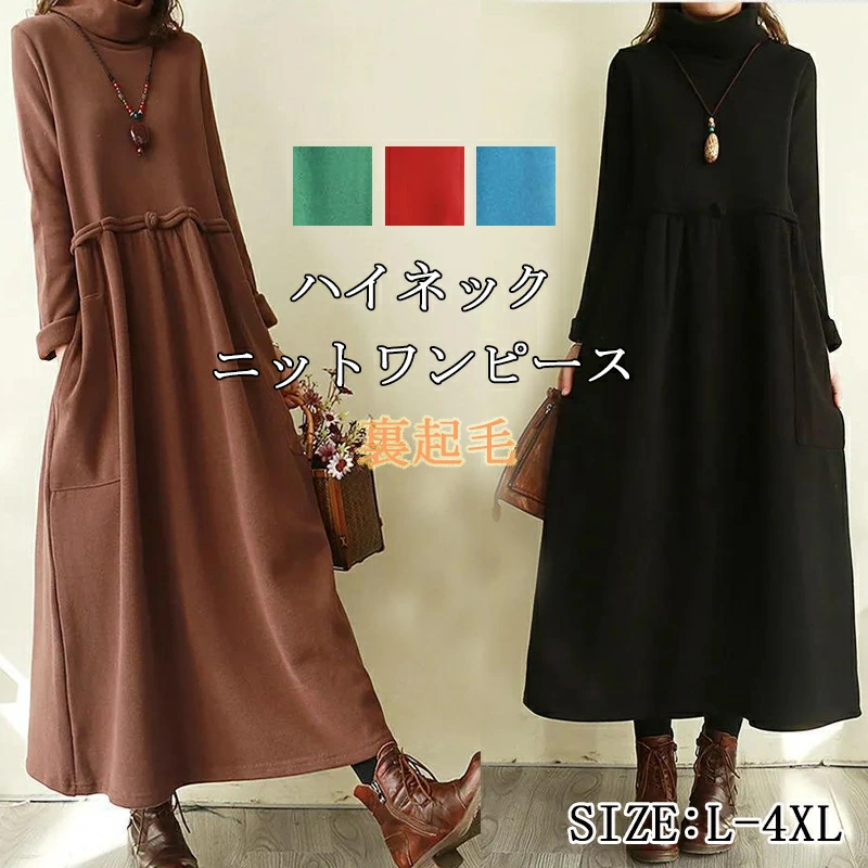 キーワード:ワンピース スウェット レディース スウェットワンピース ロング ハイネック 長袖 秋 冬 秋冬 タートルネック ロングワンピース 黒 ログ丈 マキシ丈 マキシ 大きいサイズ 裏起毛 ポケ...