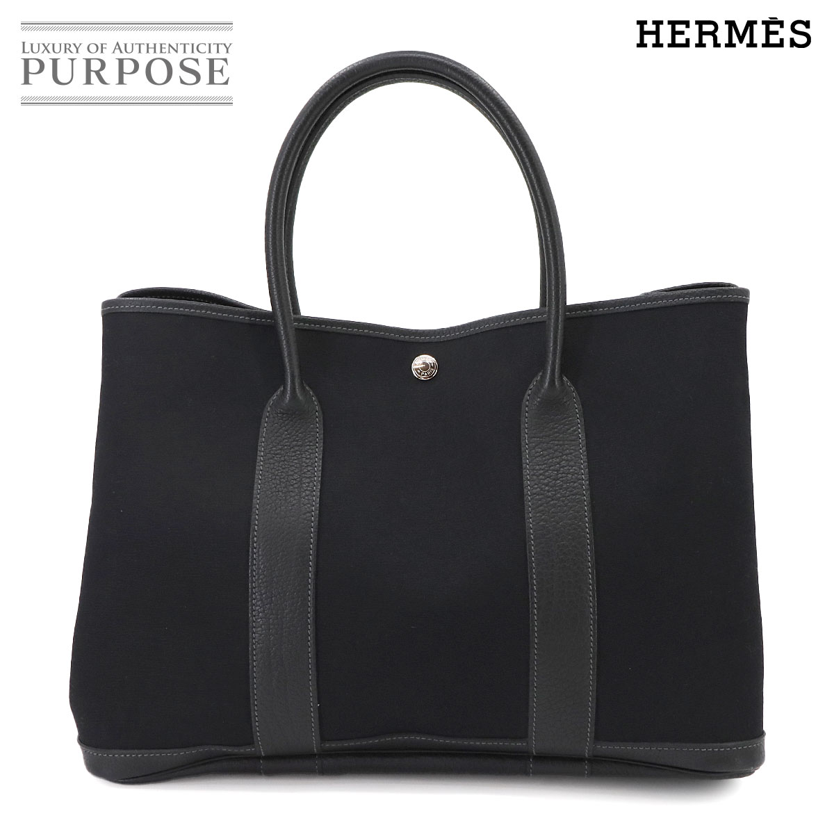 美品 エルメス HERMES ガーデンパーティ 36 PM トート バッグ トワルオフィシェ レザー ブラック □I刻印 シルバー 金具 90301518