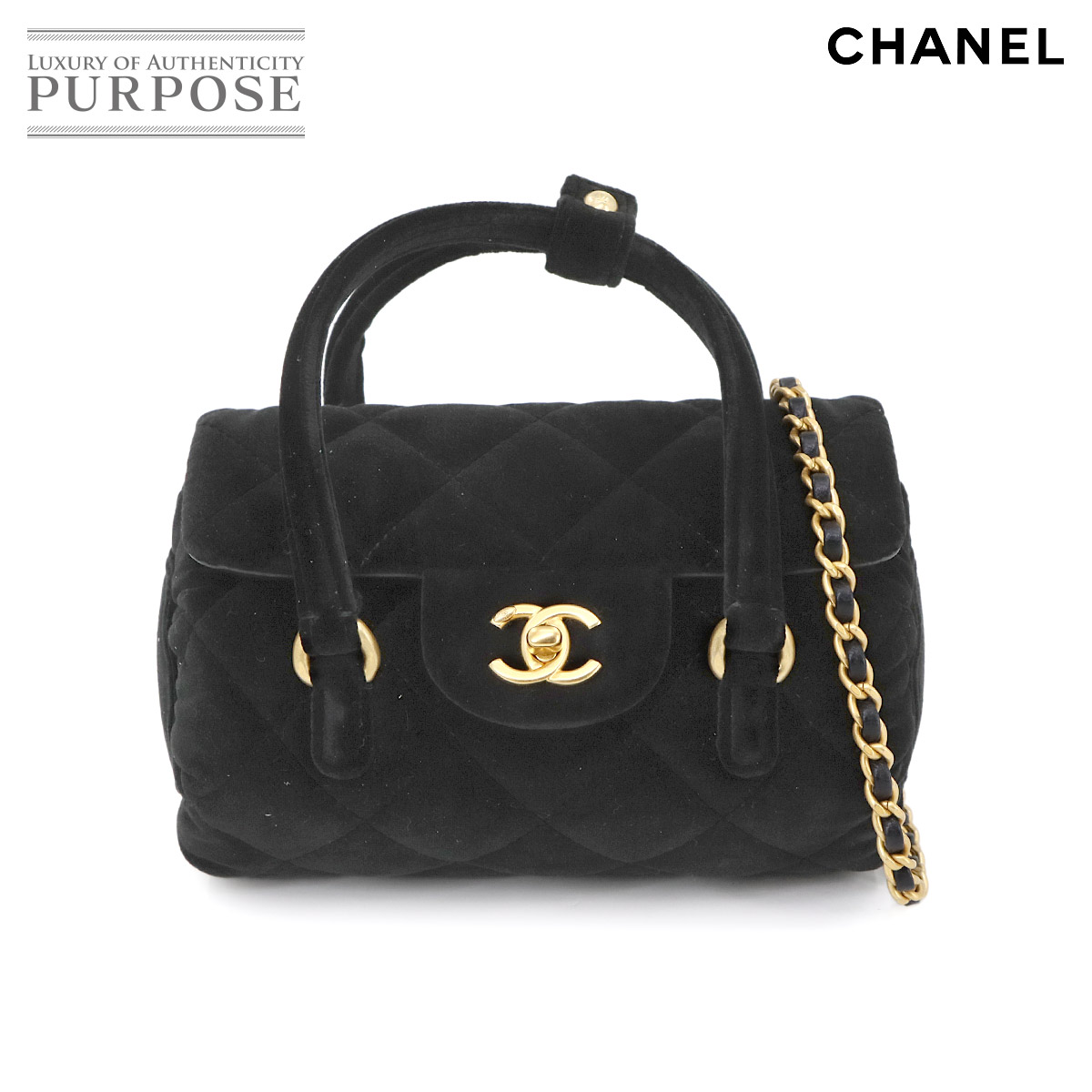 シャネル CHANEL ミニ マトラッセ チェーン ショルダーバッグ レザー ブラック