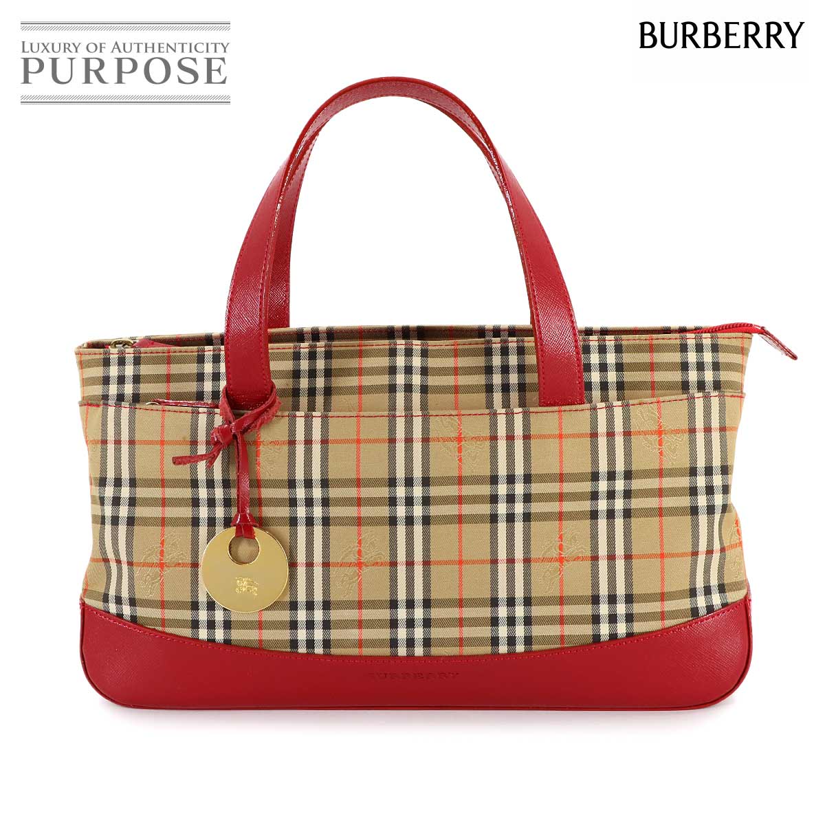 新品同様 バーバリー バッグ ノバチェック ハンド バッグ キャンバス レザー ベージュ レッド レディース 90308542 【中古】ブランド