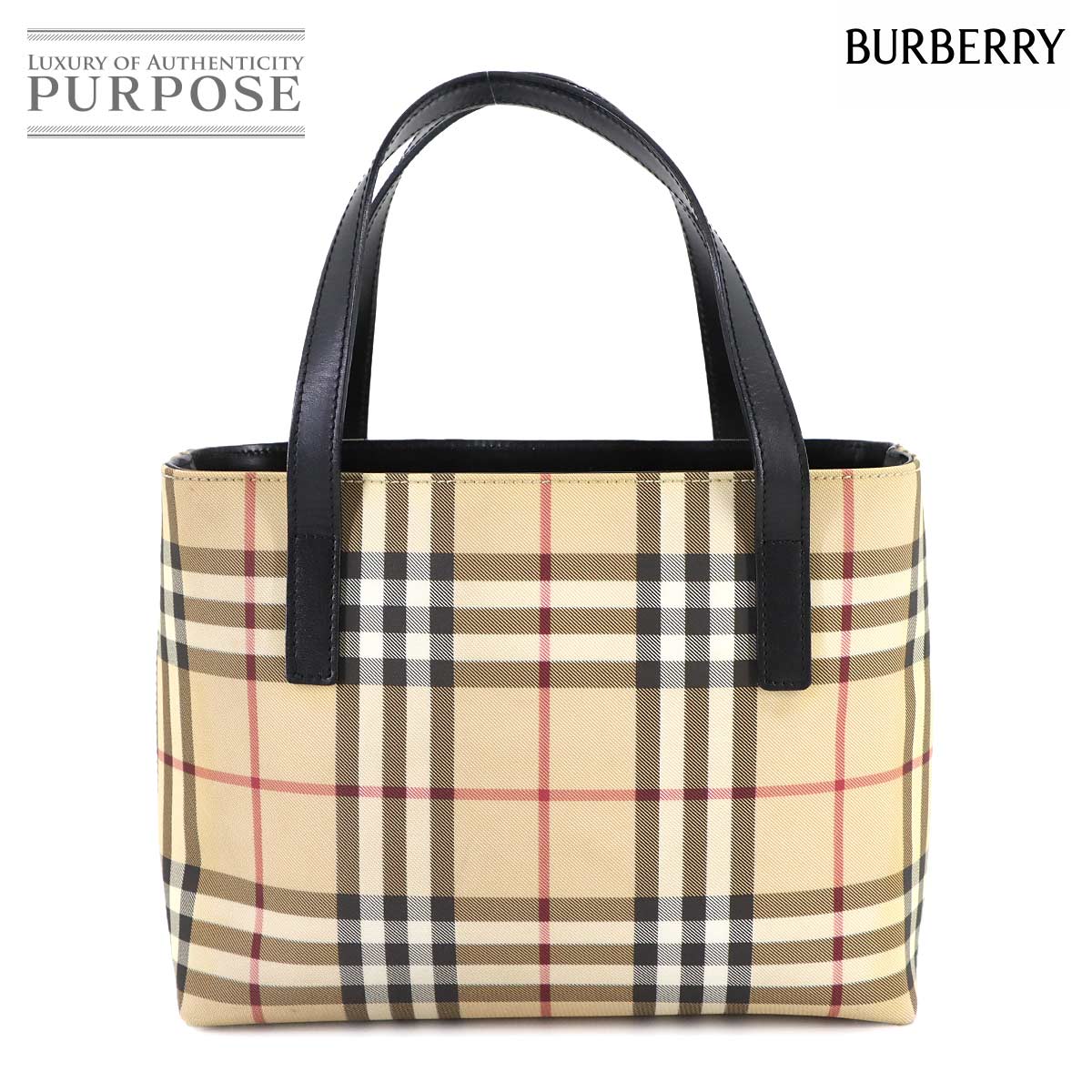 美品 バーバリー バッグ ノバチェック トート バッグ PVC レザー ベージュ ブラウン レディース 90311111 【中古】ブランド