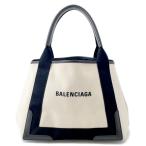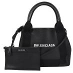 バレンシアガ トートバッグ ネイビーカバス S ポーチ付 339933 BALENCIAGA 黒 白 【安心保証】