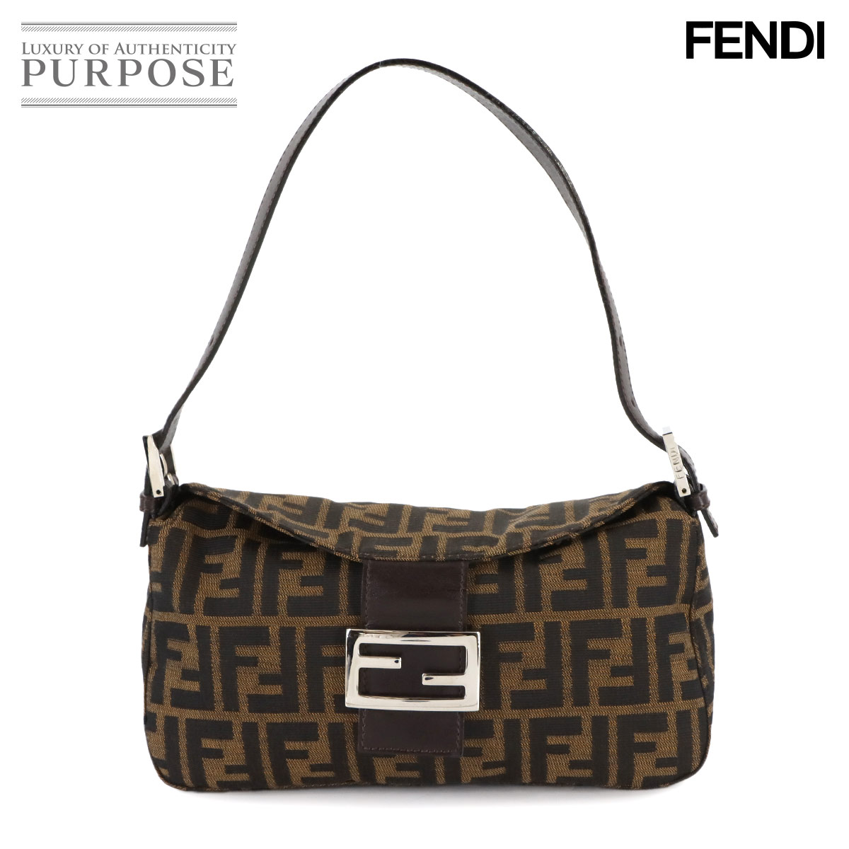 新品同様 フェンディ FENDI ズッキーノ ショルダー バッグ スエード キャンバス ブラック ベージュ 8BR098 シルバー 金具 90309934...