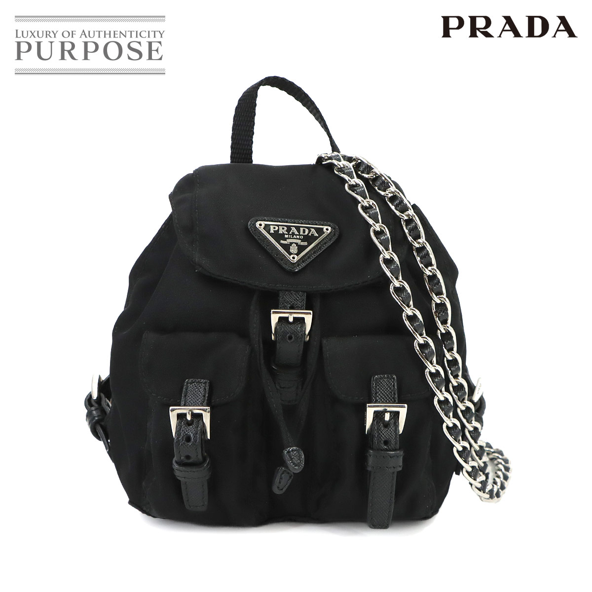 プラダから、アイコニックなナイロン素材の"ミニ チェーンショルダーバッグ"です。ミニリュック型の可愛らしいフォルムにフロントのトライアングルロゴが印象的。必需品が収納でき、ちょっとしたお出掛けに最適で...