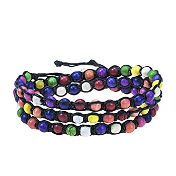ChubbyChicoCharms Polyamorous、ピュータービーズブラックワックスコットンコードブレスレット、2.5?"