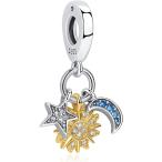 商品名Nbsameng S925スターリングシルバーチャーム パンドラブレスレットとネックレスに対応 DIY ホリデーギフト レディース ガールズ 太陽 月 星, シルバー, キュービックジルコニアN...