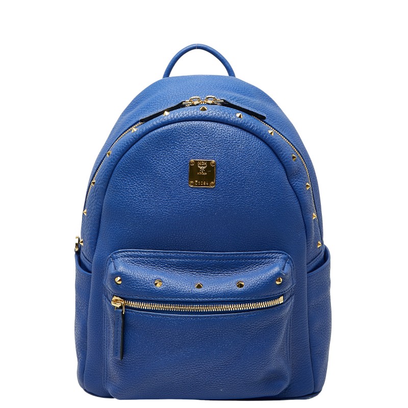 エム シー エム スタッズ リュック バックパック ブルー レザー レディース MCM 【中古】