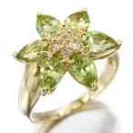 K18YG フラワーモチーフ ペリドット ダイヤモンド リング 11号 D0.10ct イエローゴールド750 指輪 ジュエリー 宝石 レディース 女性