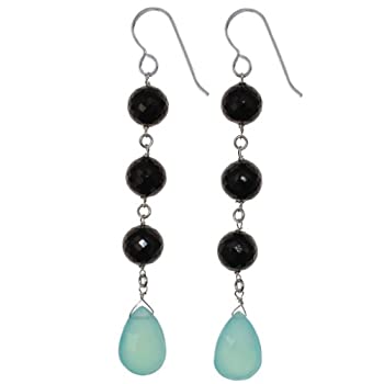 商品名Nicole Miller ファインジュエリー - ベゼルセット 洋梨型宝石スタッドイヤリング スターリングシルバー (6x4mm), 金属 ジェムストーン, カルセドニーBlue Aqua C...