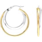 商品名LeCalla レディース 女性用スターリングシルバージュエリーツーンダブルサークルクリックトップフープイヤリング 2トーンフープLeCalla Sterling Silver Jewelry ...