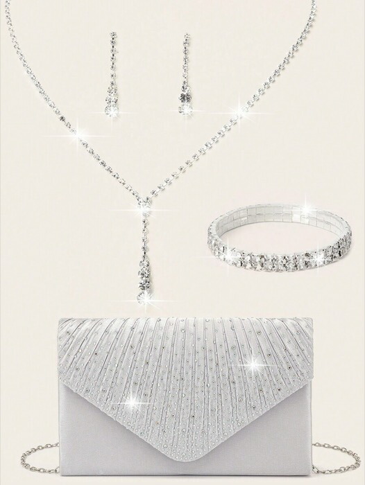 [ 7日から10日程度でお届け予定 ] ジュエリー レディース セット 4点セット レディース ラインストーン イブニングクラッチバッグ ライン