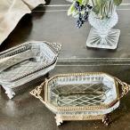 ガラストレイ 真鍮×ガラス 脚付 クラシック トレイトレー 小物入れ レトロ 英国 欧風 おしゃれ 可愛い アンティーク調 シャビーシック 輸入雑貨