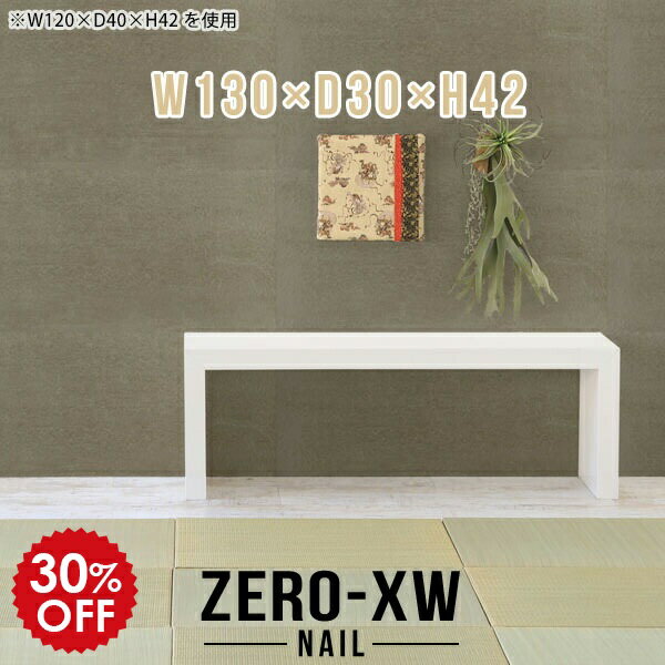 ZERO-XW W140×D30×H42 nailサイズサイズ:約幅1400 奥行き300 高さ420 mm天板厚み:約58 mm材質メラミン樹脂化粧合板カラーネイル(ホワイト)※モニターなどの閲覧環...