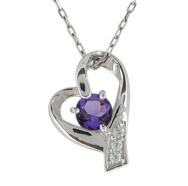 アメジスト ネックレス 天然石 大粒 1粒 ダイヤモンド K10ホワイトゴールド 古希 お祝い 紫 宝石 女性 おしゃれ 母 2月誕生石 誕生日 プレゼント 30代 40代