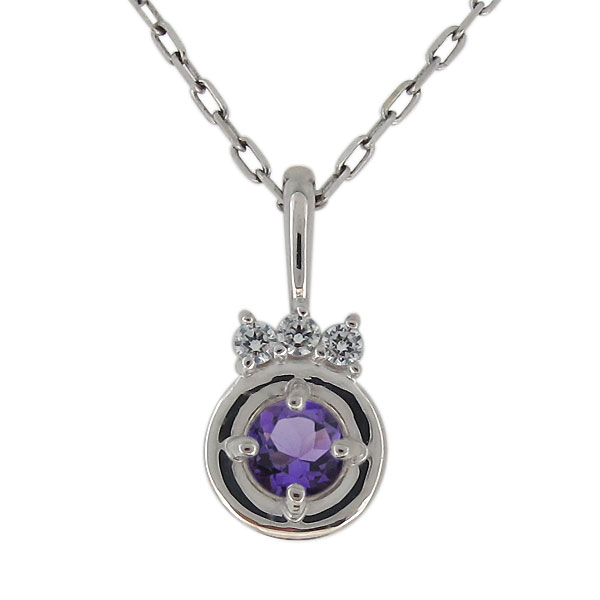 アメジスト・ネックレス・プラチナ・2月誕生石・一粒・ペンダント