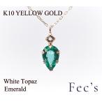 ペンダント ネックレス レディース アレルギー対応 ニッケルフリー K10 10金 イエローゴールド ホワイトトパーズ エメラルド 天然石 貴石 5月 誕生石