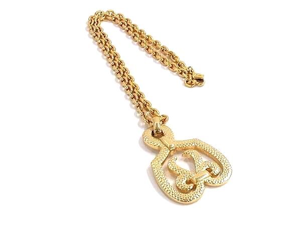 ChristianDior クリスチャンディオール ネックレス ゴールド メタル レディース リボン エンブレム ペンダント 超美品【本物保証】