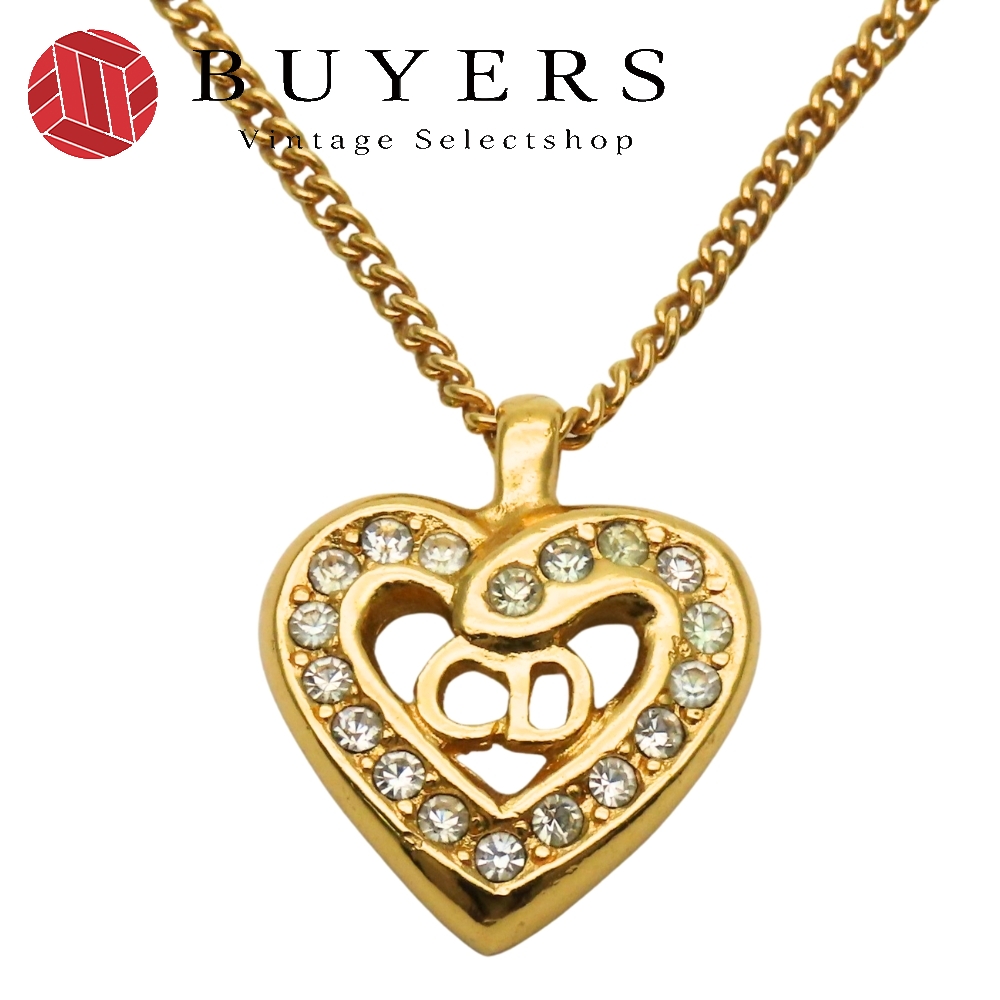 中古 クリスチャンディオール ネックレス ロゴ メタル ラインストーン ゴールド メッキ GP アクセサリー レディース 女性 Christian Dior