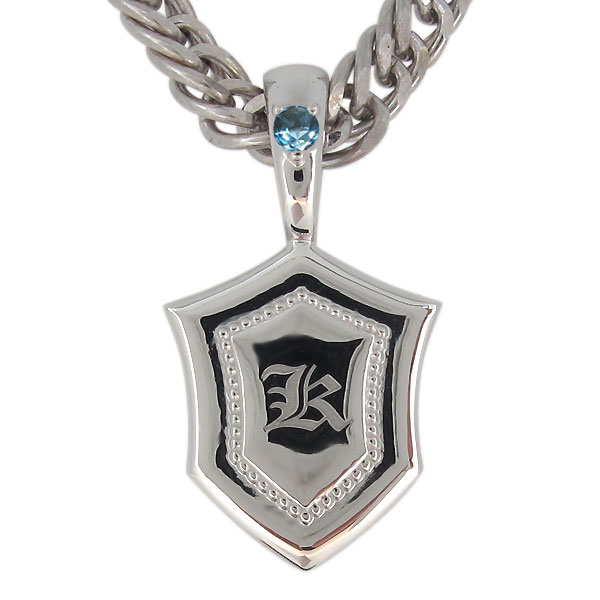 11月誕生石ブルートパーズを使用したシルバー製の、盾(シールド)モチーフメンズネックレス(ペンダント)です。 ※表面に一文字イニシャルが入れられます。【A〜Zのアルファベットからお選びください】 ■本...