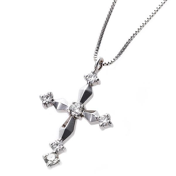 ダイヤモンド ネックレス クロス 0.1ct K18 ホワイトゴールド 十字架 クロスモチーフ ペンダント